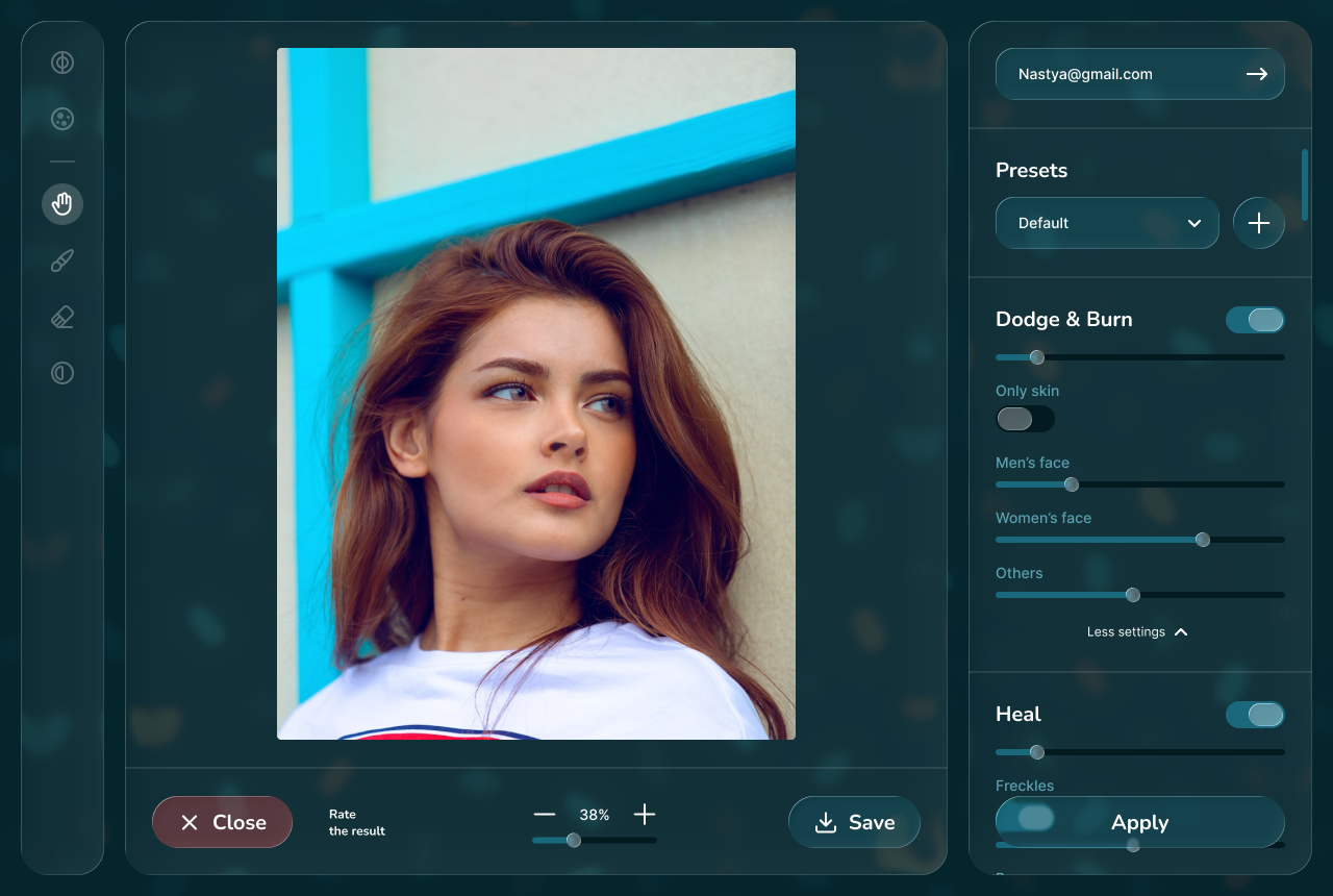 Автоматически определяет пол человека по фотографии и выбирает правильный подход к ретуши.